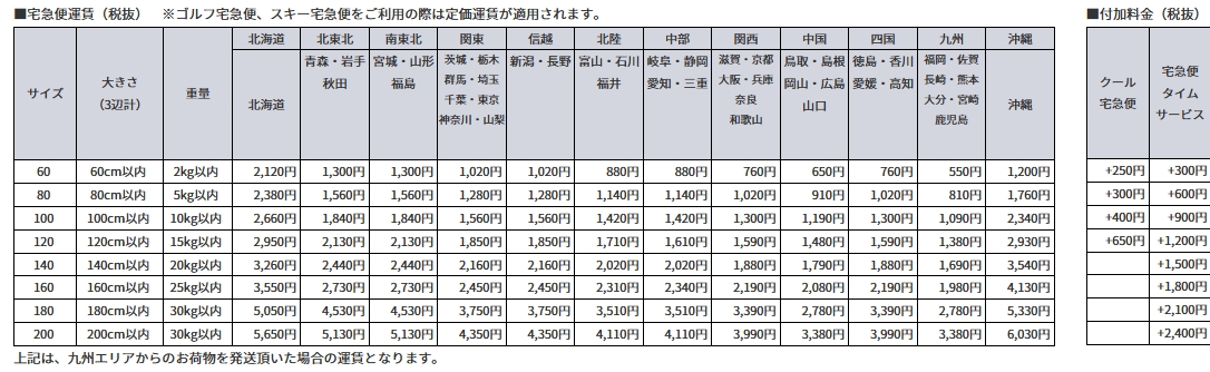 地域ごとに設定された下記送料(税別)を商品代金に加えてお支払いいただきます。